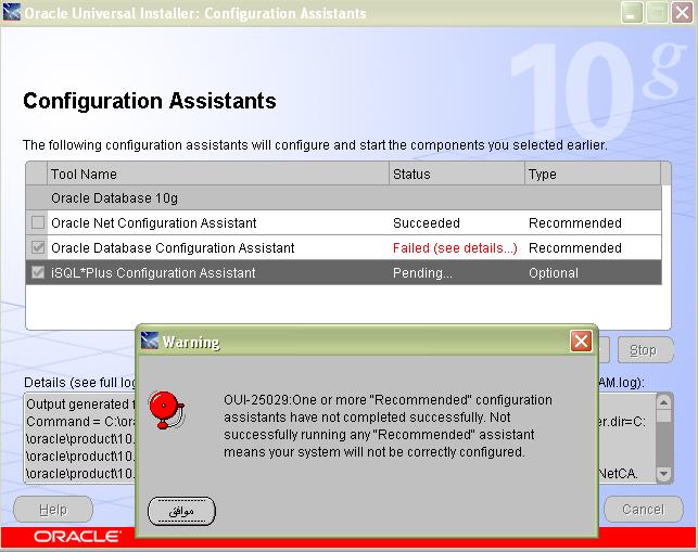 بتاريخ: 20 يوليو 200619 سنة comment_74774 بأجن !! ثلاث مرات وقد تزيد كلما حاولت تنصيب الأوراكل 10 جي مايضبط معي قد يبشرني بأنه تم التنصيب بشكل ناجح مع وجود بعض الأخطاء وإذا أستخدمت sql * ما أقدر يطلع لي إيرور ويقول لي أعد إدخال اليوزر نيم والباسوورد هذا وأنا حاذفة أوراكل 9 آي ومحملة 10 جي على أساس إنها نسخة كاملة ولا تشمل نواقص 9 آي -بديت أحقد عليها - ليتك أخوي تعرف لحل المشكلة هذي شوف المسج اللي في الصورة وشوف مو كل الأشياء اللي وراها صايرة سكسيد فيه واحد فيلد وعلى أساسه اللي تحته مامشى مدري وين الإشكال فيه علما بأنني حملت من موقع أوراكل هالنسخة بس مجلد واحد مضغوط حجمه 624 ميغا والله يعطيك العافية ويجزاك بالجنة تم تعديل 20 يوليو 200619 سنة بواسطة طالبة حاسب...!!! تقديم بلاغ
