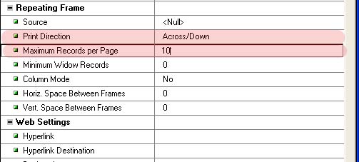 بتاريخ: 6 يونيو 200619 سنة comment_71377 الاخ الكريمممكن ان تضع عمود وتضغط على خصائص ال Repeating Frame بحيث تختار Printing direction غيرها الى Across/Downوغير ال Maximum Record per Page غيرها الى 10 مع توسيع جهة الشمال طبعاكما هو مرفق بالصورة تقديم بلاغ