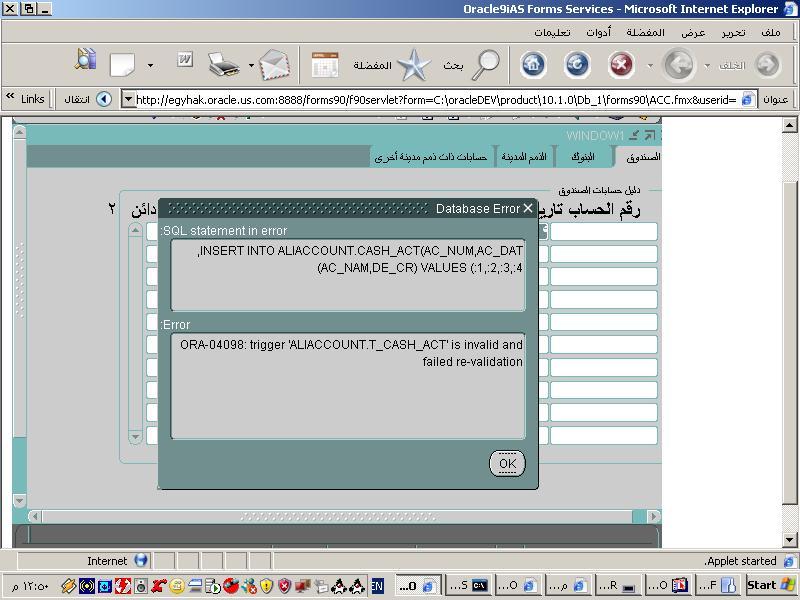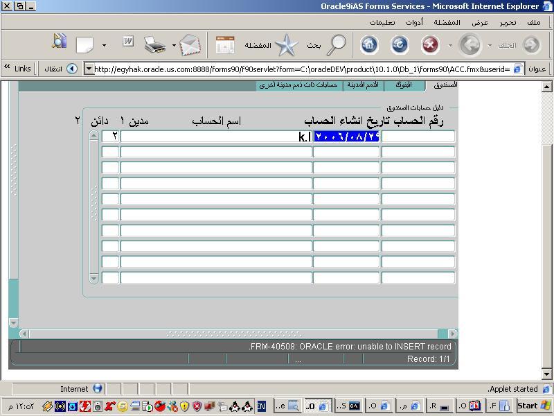 بتاريخ: 30 أغسطس 200619 سنة comment_77621 السلام عليكم ارى فى الصورة خطاء فى عملية الادخال حيث ان المكتوبvalues (:1,:2,:3:4) vوهذا خطاء حيث ان فى الادخال لا ييتم وضع : النقطتين هذا اولا ثانيا انك قمت بتحديد حقلين فقط وتريد ادخال اربع قيم هذا خطاء اخر .هناك نقطة اخرى انه عند التعامل مع الفورم تاب وليس كونتانت فيجب توضيح مسار كل تاب للاخر بمعنى انى ارى فى الفورم ان لديك تاب اسمه الصندوق واخر للبنوك وهكذا عند التعامل مع التاب يجب توضيح اسم الجدول ثم اسم الحقل وقد رائيته مكتوب بالفعل ولكن يجب تحديد ولكن يفضل وضع قيد ماستر ديتيلز فى حالة التاب لضمان مرور البيانات بين القواعد . وشكراميجا تقديم بلاغ