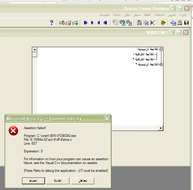 بتاريخ: 2 أكتوبر 200619 سنة comment_79963 السلام عليكمشباب انا اخذت من المنتدى كيفية صنع الشجرة و الحمد لله كل شي تمام لاكييييييييييييين تطلع معي مشكلة لما اخفي البيانات الفرعية ورقم الخطأ: frm-41026وهادي الصوره في المرفقات تقديم بلاغ