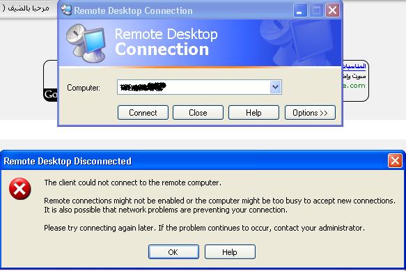 بتاريخ: 31 يناير 200719 سنة comment_90558 السلام عليكماريدمعرفه خطوات ضبط الاتصال وتشغيله Remote Desktop Connectionللتحكم من جهازي بالسيرفير حيث اني اعمل علي winxp والسيرفير win2003ولكم جزيل الشكر تقديم بلاغ