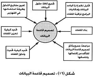 يتكون تصميم قاعدة البيانات من تركيب متطلبات قاعدة البيانات المنطقية والأجهزة المخصصة ومتطلبات البرامج لنظم إدارة قواعد البيانات ومتطلبات معالجة المستفيد خلال وحدة قابلة للتنفيذ. وأثناء هذا النشاط يتم تجميع عناصر قاعدة البيانات المطلوبة في شكل سجلات طبيعية ، ويتم تحليل متطلبات البيانات المنطقية بالتعبير عن العمليات التي تستخدمها وعن تلك التي هي مرتبطة ببعضها البعض . ويوضح الشكل (16) الخطوة التنفيذية لإنجاز هذا النشاط .