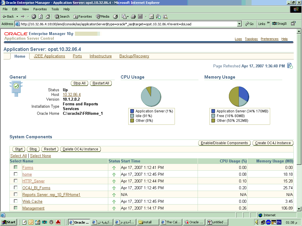 بتاريخ: 16 أبريل 200719 سنة comment_97198 يا شباب ،،،،،،إذا أريد تنزيل Oracle Application Server 10g (10.1.2.0.2)R2 على جهاز به مسبقا Oracle DataBase 9i مربوطة مع Form 10g و Report 10g . فأسئلتي هي:(1)هل إذا أريد تنزيل Oracle Application Server 10g على الجهاز لازم أن تكون الDataBase منزله على الجهاز مسبقا ، أم لابد ان انزل الـ DataBase بعد تنزيل الApplication Server ؟(2)ماهي الطريقة لربط الـ DataBase 9i مع الOracle Application Server ؟ وما هو الـ DataSource سمعت أن له علاقة بربط الـ DataBase مع الـ Oracle Application Server?(3)إذا أتبعت خطوات تنزيل الOracle Application Server 10g من الـ Document التي تأتي معها فهل هنالك خطوات أخرى خارج هذه الDocument لازم أعملها لرفع النظام الذي أنا عملته بOracle Form 10g و Oracle Report 10g إلى الـ Oracle Application Server 10g ؟ إذا كان يوجد فما هي ؟(4)ما هي خطوات تنزيل الـ Oracle Application Server 10g ...ارجو مساعدتي في تعبأتها : A. Infrastructure B. Business Intelligence and Forms Middle Tier C. what ???????xارجو المساعدة في الإجابة على هذه الأسئلة لأني ناوي أنزل Oracle Application Server 10g على جهاز عندي ...... تقديم بلاغ