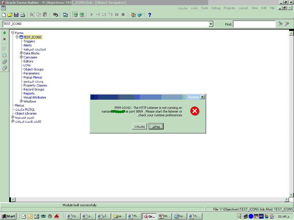 بتاريخ: 17 أبريل 200719 سنة كاتب الموضوع comment_97303 أشكركم يا أخواني / Essam و أحمد محسنسؤالي هو : بعد مانزلت الOracle Application Server 10g for Form & Report Servicesما هو المطلوب عمله ، مع العلم أنني قد عملت المطلوب في الـ Formsweb.cfg ثم حاولت تشغيل الفورم بدون تشغيل الStart OC4J Instance إلا أن الفورم لم تشتغل ثم لما شغلت الStart OC4J Instance اشتغلت الفورم.إذا ما هي الفائدة من الApplication Server ؟إذا كانت هنالك خطوات أخرى أرجو مساعدتي فيها ...... أرفق لكم في الأسفل صور Oracle Application Server 10g for Form & Report Services الي نزلته مع صورة الفورم وصورة للformsweb.cfg ( فقط لترونها )سؤال أخر :ماهو الـ instance Name الذى ادخله عند تنزيل الApplication Server ؟ حيث أنني سميته نفس اسم الService Name تبـع الconnection بين الDB والفورم ..هل هذا صحيح أم ماذا ؟جزاكم الله خيرا الجزاء وجعلها في موازيين حسناتكم ...لمساعدتي ومشاركتي الحلول تقديم بلاغ