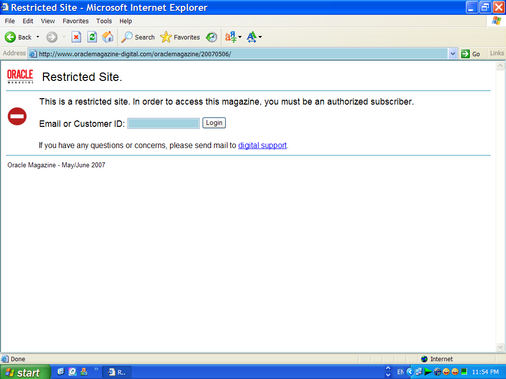 بتاريخ: 15 مايو 200718 سنة comment_99899 لقد دخلت على موقع :-http://www.oraclemagazine-digital.comو لكنه اعطانى هذه الصورة ........ فما الحل ؟ تقديم بلاغ