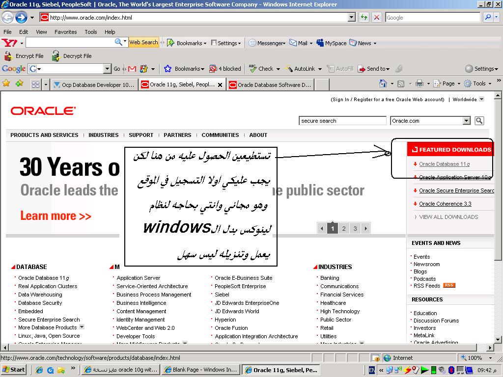 بتاريخ: 10 أكتوبر 200718 سنة comment_112357 اولاَ:اوراكل 11g هو databaseثانيا:تستطيعين الحصول عليه من موقع اوراكل الرسمي وهو مجانيثالثا:حجمه 1.7 جيجا ولا يعمل حالياً الا على نظام لينوكسرابعا:اذا اردت التدرب على الdevloper استعملي 10g***مرفق صوره من موقع اوراكل الرسمي ويجب عليكي التسجيل بالموقعقبل الحصول على المنتج والتسجيل مجانيوسيوفي بالغرضخامسا:ارسلي عنوانكي البريدي على إيميلي وساحاول ارسال نسخه لكي على سي دي بالبريد[email protected]واذا كنت تعرفين احد بالاردن فارسلي لي عنوانهم البريدي وسارسله لهموهم سيرسلوه لكيوانا بخدمتكي يا اختي واطلبي واسألي كما تريدين بلا حرجوفقكي الله تقديم بلاغ