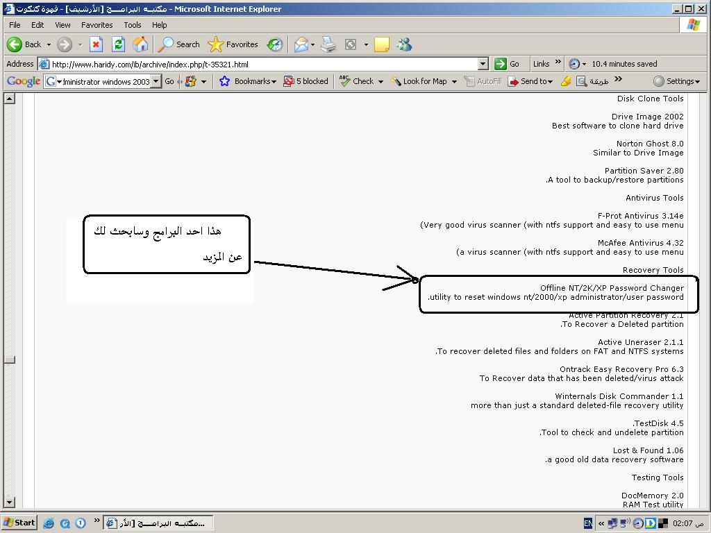 بتاريخ: 17 أكتوبر 200718 سنة comment_112999 يا اخوانى ارجوكم انا مدير لشبكة بالشركة التى اعمل فيها واعمل على سيرفر 2003 وفجأة حدثت مشكلة بالسيرفر نتج عنها عمل desabl لل admininstrator وتم عمل restart لل server وحتى الان انا بدخل بحساب guest واريد ادخل بحساب administrator حتى اشوف ايه المشكله او اى حساب له نفس الصلاحيات بس مش عارف وممنوع اعمل فورمات لان السيرفر عليه قاعدة بيانات اوراكل ياريت تعطونى حل الله يخليكم تقديم بلاغ