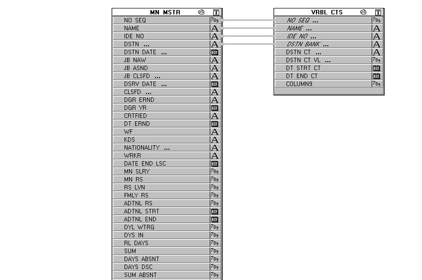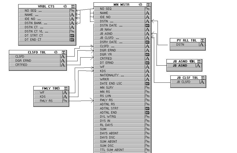انشاء العلاقات ALTER TABLE VRBL_CTS ADD (CONSTRAINT VRBL_CTS_BRW_F1 FOREIGN KEY(NO_SEQ) REFERENCES MN_MSTR(NO_SEQ)) ENABLE CONSTRAINT VRBL_CTS_BRW_F1; ALTER TABLE VRBL_CTS ADD (CONSTRAINT VRBL_CTS_B