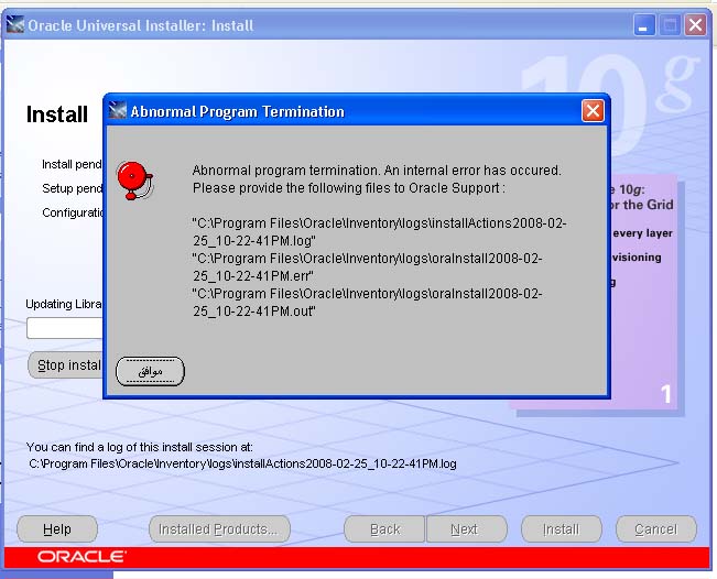بتاريخ: 25 فبراير 200818 سنة comment_123277 ارجو من اهل الخير والخبره المساعده للضروره القصوىلقد فرمت الجهاز وانزلت win xp وعند تنزيل oracle 10g ظهرت هذه الرساله وعدما اضغط على مواق يغلق كل شي ولقد ارفقت صورة الرساله فارجو من اهل الخبره المساعدهطبعا الجهاز p4 + ram 512 + H.D 80 g تقديم بلاغ