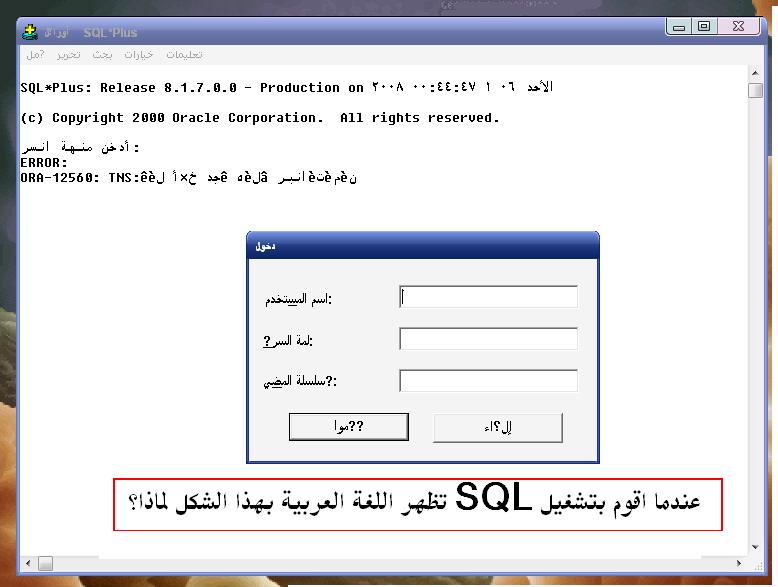 بتاريخ: 1 يونيو 200817 سنة comment_130214 1-try to use:in NLS_LANG = ARABIC_UNITED ARAB EMIRATES.AR8MSWIN12562-Be sure that your O.S. has arabic language installed تقديم بلاغ