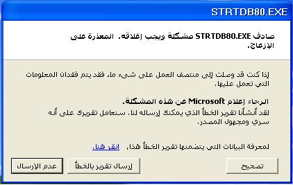 بتاريخ: 5 يونيو 200817 سنة comment_130572 السلام عليكم عندي مشكلة وهي ظهور رسالة بعد تثبيت الاوراكل الاصدار 8.0.5 على ويندوز XP واعادت التشغيل تظهر هذه الرسالة strtdb80.exe دائمأ ولا اعرف السبب مع اني جربتها على اكثر من كمبيوتروارفق لكم الرسالة تم تعديل 5 يونيو 200817 سنة بواسطة MA222 تقديم بلاغ