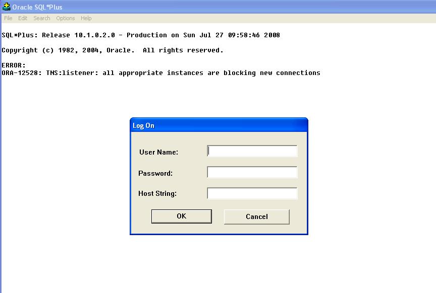بتاريخ: 27 يوليو 200817 سنة comment_134195 بسم الله الرحمن الرحيماخواني الاعزاء عندما اقوم بالدخول لقاعدة البيانات للمستخدم مثلا scott/tiger@orcl على اساس ان لدي قاعدتي بيانات orcl,orcl2يظهر لي مسج غريب وهو ORA-12528:المستمع تقوم جميع الطبعات المناسبة بقفل الاتصالات الجديدة مع العلم انني قمت بعمل الاتصال بشكل سليم ولا يوجد اي مشكلة في ملف TNSNAMES , بل على العكس كانت الامور تمام وبعد عمل restart للجهاز ظهرت لدي هذه المشكلة .في المرفقات صورة توضيحية تقديم بلاغ