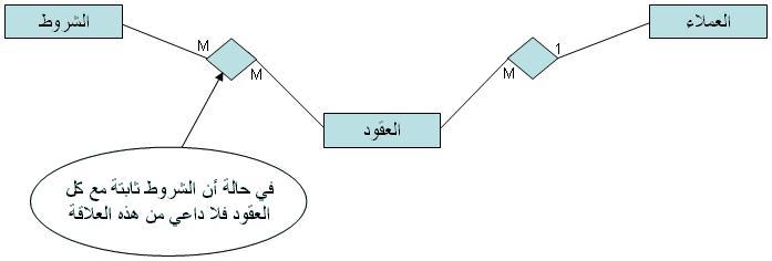 بتاريخ: 27 سبتمبر 200817 سنة كاتب الموضوع comment_139782 انا بشكرك كتير على المعلومات المفيدة ولكن انا ضعيف في الريبورت وما اريده بكل بساطة ان اعمل لكل عميل عقد للايجار يعني جدول لعقود الايجار واربطه مع رقم العميل في جدول العملاء لهون اوكي الان في كل عقد في شي اسمو الشروط هيي تقريبا ثابتة ولكن الافضل كما انت تفضلت ان عملها قابلة للتعديل السؤال هل اعملها في نفس جدول العقود ام ان تكون في جدول خاص بها وشكرا لك يا صديقي بص يا أخي أولاً الشروط يجب أن تدرج في جدول خاص !!! لأنه ليس من المعقول تكرار الشروط كل مرة عند بناء عقد جديد !!!الشيء الثاني يجب أن تحدد هل هذه الشروط ثابتة لكل العملاء أم انها متغيرة بطبعها !!!يعني مثلاً ، أنت بتتفق مع كل عميل شروط مختلفة عن الآخر ، أو متوافقة مع غيرة ... أم أنها ثابتة مع كل عقد يدرج بجدول العقود ؟؟؟لو كان الشروط ثابتة مع كل عقد ، في هذه الحالة ستدرج جدول به كل الشروط ، ومن ثم عرضه بصورة مباشرة بالتقرير ... أما لو كان كل عقد له شروطة الخاصة ، في هذه الحالة يجب عليك عمل علاقة كثير الي كثير بين جدولي الشروط والعقود !!!أنظر الي الصورة المرفقةبالتوفيق صديقي العزيز شكرا لردك ولن الشروط ثابتة لكل العملاء اذا سنقوم بعمل جدول يحتوي الشروط ونعرضها في التقرير وجدول يحتوي معلومات العميل الخاصة بالتقرير وسنربطها بعلاقة مع جدول بيانات العملاء عن طريق رقم العميل هل هذا صحيح؟ تقديم بلاغ
