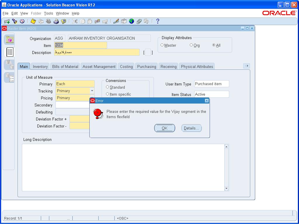 بتاريخ: 4 أكتوبر 200817 سنة comment_140068 please review ur item flex field definition,the system request u to fill it correctly and u r not> تقديم بلاغ