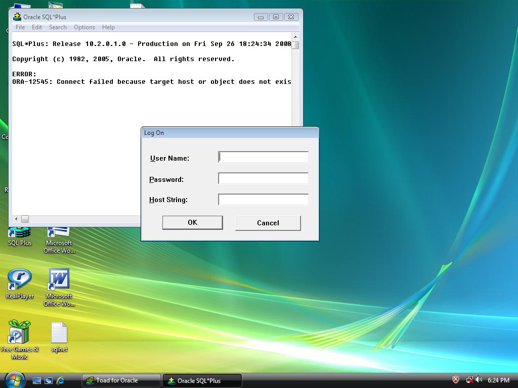 بتاريخ: 26 سبتمبر 200817 سنة comment_139745 السلام عليكم و رحمة الله و بركاتهاخواني و اخواتيoracle sql plus لا يتصل بالقاعدة البيانات و احصل على رسالة كما هو مبين في الصورة ادناهيا ريت المساعدة و رحم الله والديكم دنيا و اخرة في هذا الشهر المبارك تقديم بلاغ