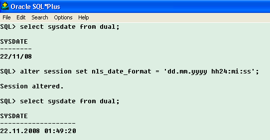 بتاريخ: 22 نوفمبر 200817 سنة comment_143536 بالنسبة لسؤالك الاول .... قومى بتنفيذ الكود التالى :- select sysdate from dual; و الناتج هو التنسيق الملائم للتاريخ التى يفترض ان تستخدميه لجمل ال insertاما فى حال اذا اردتى ان تغيرى التنسيق فقومى بأستخدام ال nls_date_format كما هو مشروح بهذه الصورة :---------Grant تستخدم لمنح الصلاحيات للمستخدميين ، و ال Revoke لسحب هذه الصلاحيات ، اما ال View فهى كائن يقودك الى البيانات التى تم تجميعها من اكثر من جدول ، و ال Procedure هو أجراء يتم صنعه و حفظه فى قاعدة البيانات من اجل تنفيذه فى اى وقت ، و ال Trigger هو كائن يتم تنفيذه اوتومتيكياً عندما يحدث شىء معين فى قاعدة البيانات .نصيحة منى استخدمى وسيلة البحث فهى أوفر فى الوقت و افضل فى وفرة البيانات .و بالتوفيق تقديم بلاغ