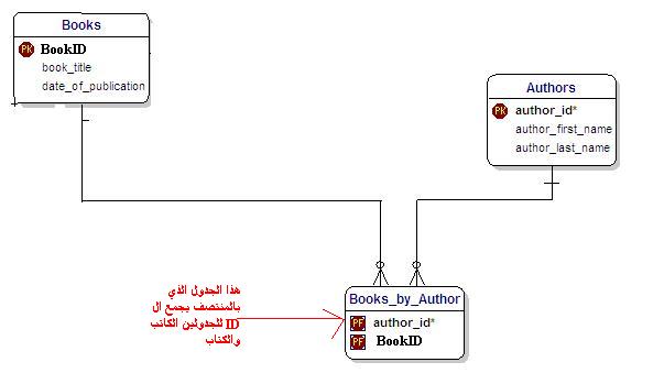 بتاريخ: 19 فبراير 200917 سنة comment_149602 السلام عليكم ورحمة الله وبركاتهكيف عمل Insert في علاقة Many to Many مثالاي عندما ادخل معلومات الكاتب وعنوان كتابة تذهب مباشرة للجدول من غير المرور بالجدول الذي بالمنتصف والذي يحتوي على ID للكاتب ورقم الكتابمثال نفس الفكرةلاني صراحة تعبت من البحث حولي اكثر من 15 يوم لاني اريد عمل صفحة عن طريق ال asp.net وباستخدام لغة sql تدخل البيانات الى الداتا بيز، فبعد ادخال معلومات الكاتب لا استطيع ادخال اسم الكتاب، اريد كود عندما ادخل اسم الكاتب وكذلك عنوان الكتاب تذهب مباشره الى كلاس ال الكاتب وكلاس الكتاب ويضاف اليهم ال ID في الكلاس الذي بالمنتصف مع العلم قاعدة البيات التي استخدمها sql وهذه الصورة فقط للتوضيح والشرحفارجو الرد منكم تم تعديل 19 فبراير 200917 سنة بواسطة sonic تقديم بلاغ