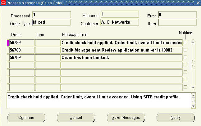 بتاريخ: 5 أبريل 200917 سنة كاتب الموضوع comment_152905 Dear Rafeek,Thank for your your quick respononse.I did all what you said at your reply, but when I click on the "Book Order' button, the Order shows the "Credit Check Hold Applied...Order Limit,over all limit exceeded.." and "Order has been bookes" as I attached this on my topic.and the order become Booked, so this is my issue,how the order Booked and the customer exceed the limit!!!!!.I need your help ASAP.Regards, تقديم بلاغ