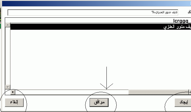 بتاريخ: 1 نوفمبر 200421 سنة comment_17157 انت عافين طبعا شكل الLOV لما تطلع تطلع بالشطل الموجود بالصورة اسفلحيث يطلع على الLOV ( موافق ، ايجاد ، الغاء)اريد يا شباب عنما اضغط على موافق الموجود في الLOV بان ينفذ لي FUNCTION معينةفما هي الطريقة ؟ وسوف ندعي لكم بخالص الاعمال ....... مستعجل عليها يا شباب تقديم بلاغ