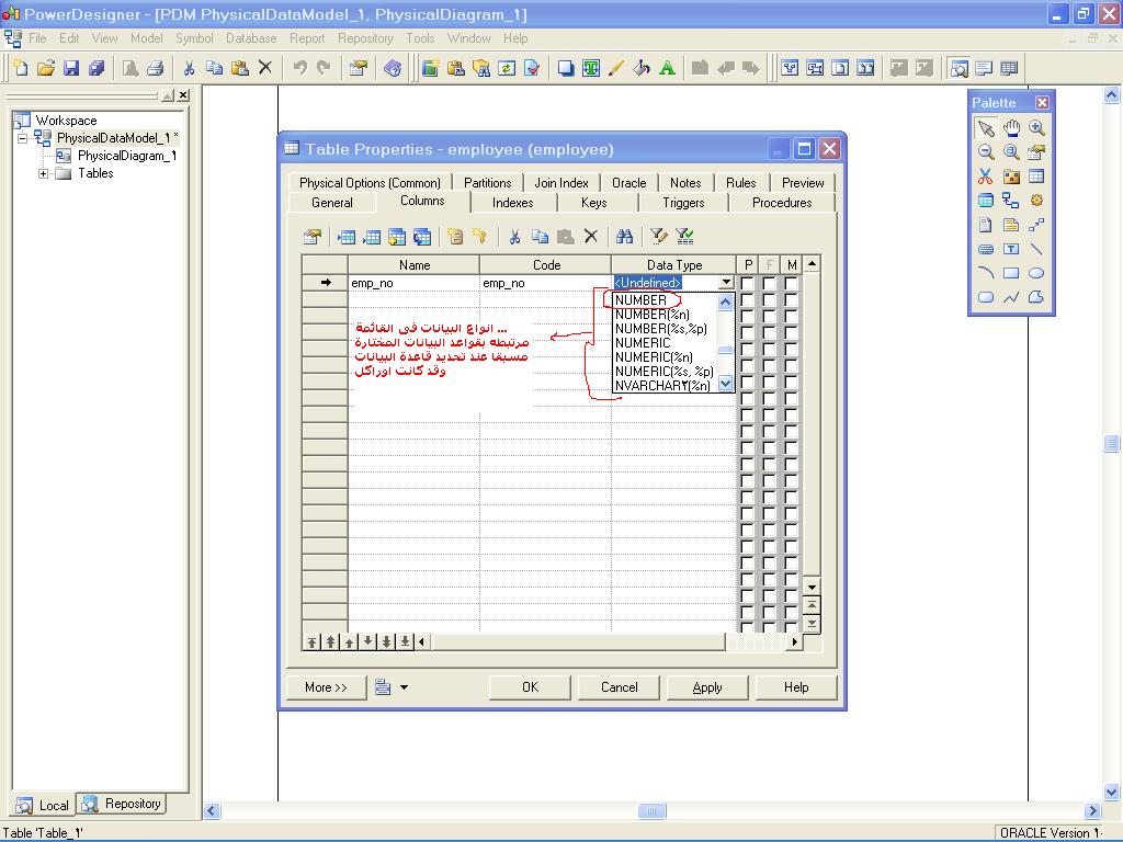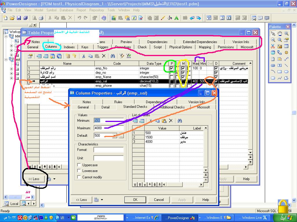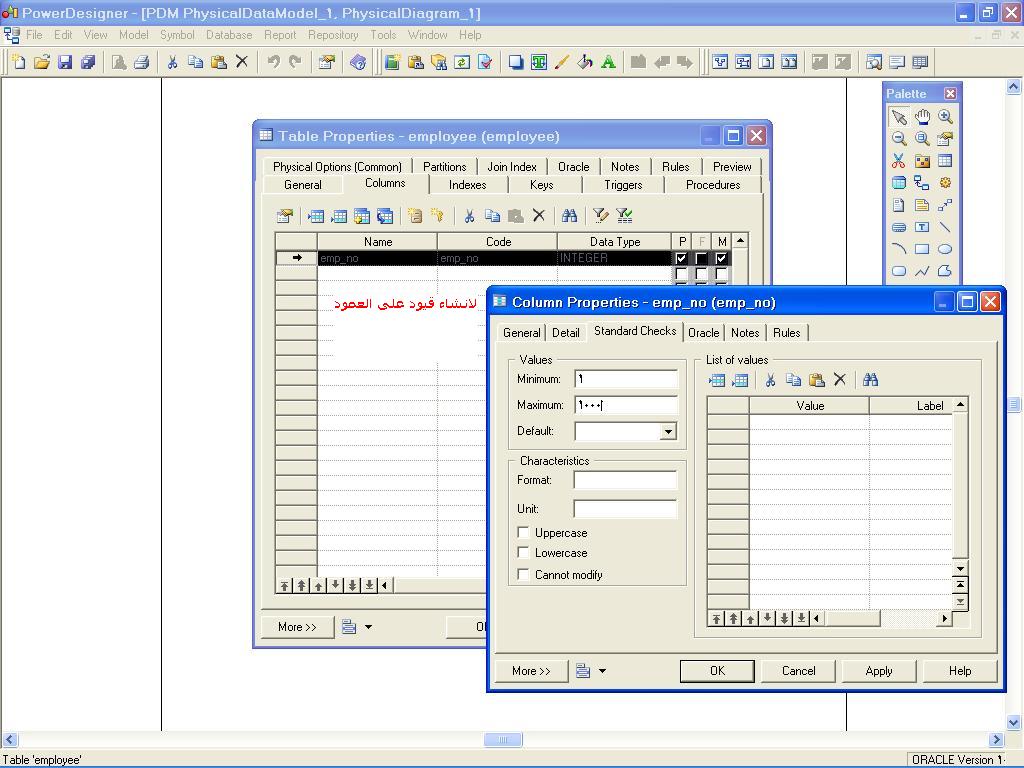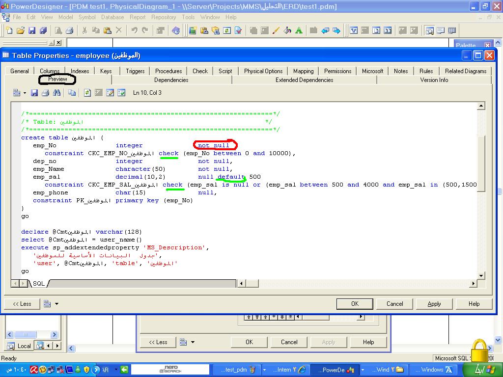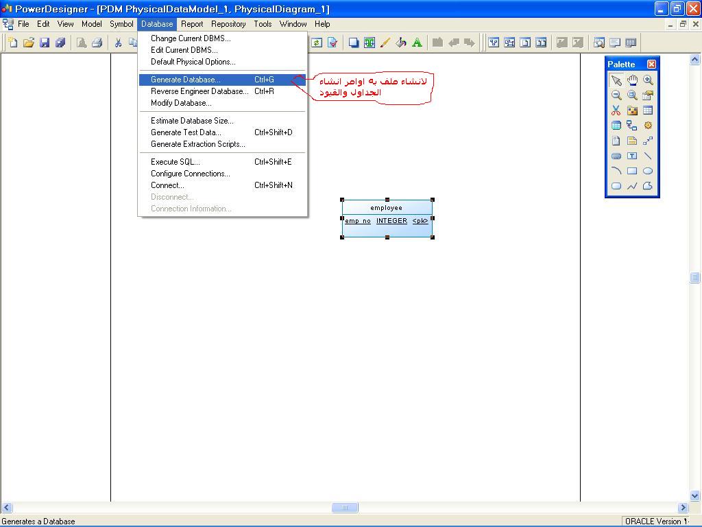 بتاريخ: 11 نوفمبر 200916 سنة comment_176196 السلام عليكم 1- اختيار نوع قاعدة البيانات oracle 2- يتم تسجيل القيود من خصائص الcolumn مثل لحد الادنى والحد الاقصى والقيمه المتوقعه 3- قيود الجداول تلقائيا على مستوى الجدول فى ملف script file الذى يحتوى اوامر انشاء الجداول 4- ملف الscript file يتم تنفيذه فى بيئة ال sql مرفق صور للشرح تقديم بلاغ
