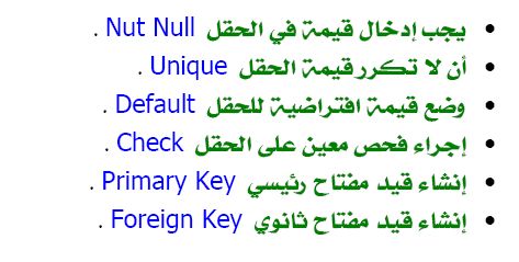 بتاريخ: 21 نوفمبر 200916 سنة كاتب الموضوع comment_177259 لدي مشكله في القيود مثل notnull ,Unique,check,Default مثل الجدوال الذي في المرفقات ...اين يتم كتابته او اختياره ...طبقت مثل الصوره لكن لم يخرج شئ الصوره الثانيه هل هي الجدول الصحيح للقيود تقديم بلاغ
