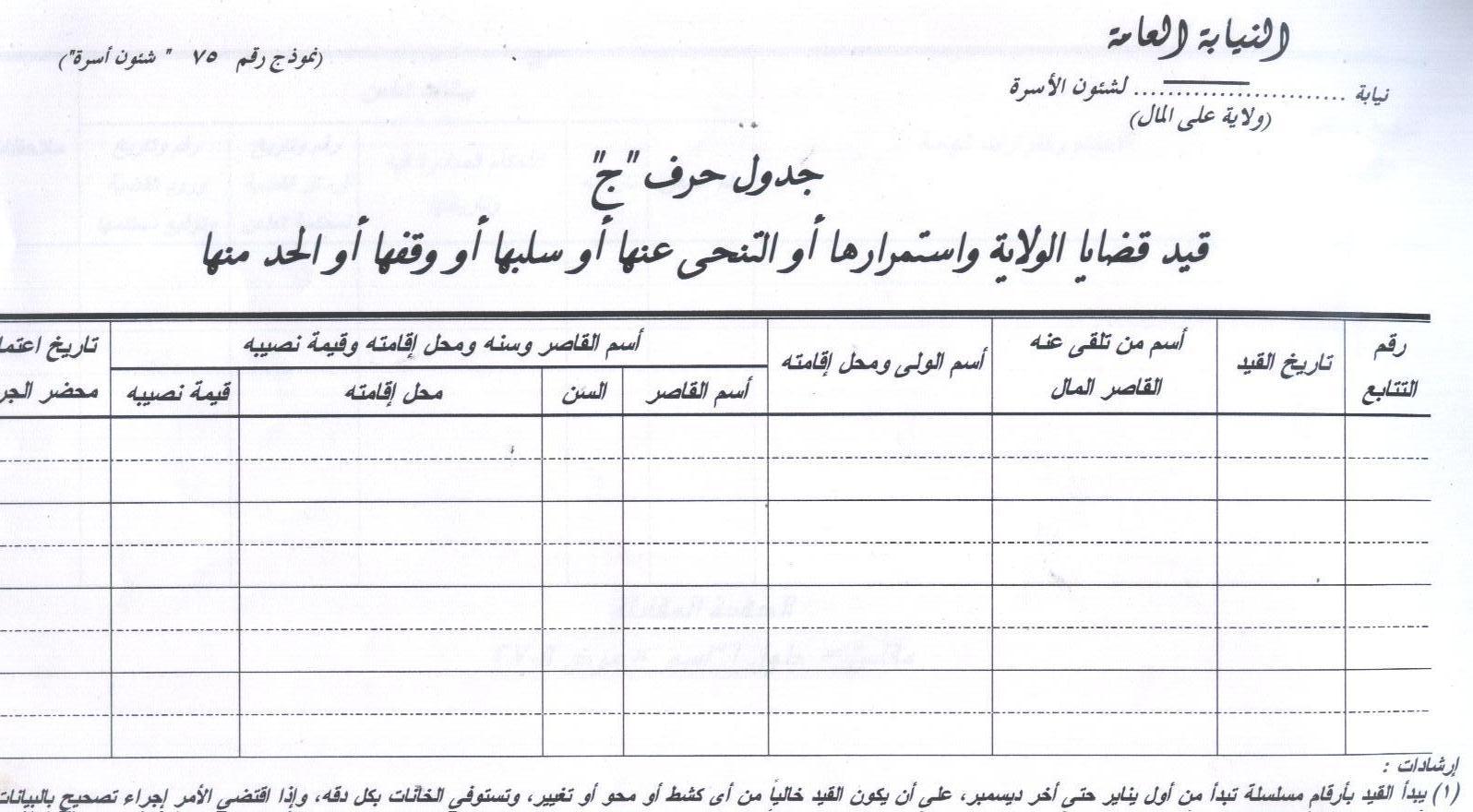 بتاريخ: 3 يناير 201016 سنة كاتب الموضوع comment_181317 صورة رقم 001,0001,002 هى صورة يتم فيها قيد نوع الوصاية(وصاية جدول ا - ولاية طبيعية جدول ج - ولاية شرعية جدول ب - قيم جدول ج ) ويتم القيد بها على حسب ورد القضية مثل قضية رقم 1 لسنة 2010 اسم المرحوم محسن مصطفى على واسم الوصية اسماء على محمد واسماء القصر محمد , منى , فتحى وسنهم 19 ,16 ,13 وتاريخ الميلاد صورة رقم 3 ,4 , 5 ,6 صورة رقم 3 هى صورة لاموال القصر 3000 جنية واقل حسب مبلغ القاصر اما الصورة رقم 4 و5 و6 فهى للفهارس للتيسير على سرعة الوصول الى الاسم ورقم القضية ونوع الوصاية ويتم القيد حسب الحروف الابجدية باسم المتوفى تقديم بلاغ