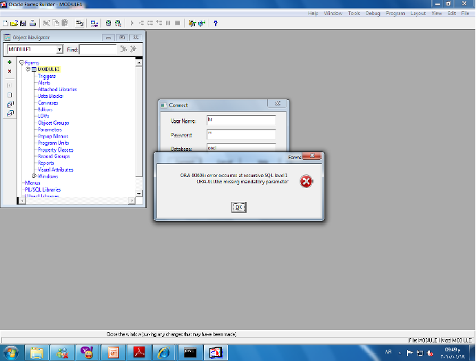 بتاريخ: 16 يناير 201016 سنة comment_182412 السلام عليكم ورحمة الله وبركاتهلو سمحتم ياجماعة انا كل لما احاول اشغل الdeveloper 10 gبمجرد ما بكتب اليوزر نيم والباسورد بيظهرلى الرسالة اللى تحت دىحاولت ادخل باستخدام اكتر من يوزر بيعمل نفس المشكلة وبتظهر الرسالة دى مع ora-00604:errored at recursive sql level ora-01009: missing mandatory parmaterانا طبعا شغلت السرفيس وقفلتها اكتر من مرة بس مفيش فايدةانا للعلم شغال على ويندوز 7اتمنى مساعدة سريعة ياريت لو سمحتم لانى بجد مزنوقجزاكم الله خيرا تقديم بلاغ