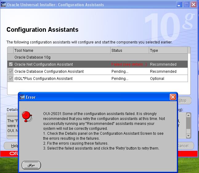 بتاريخ: 20 يناير 201016 سنة comment_182886 يا جماعة كل مرة فى تصطيب الاروراكل 10g تظهرلى المشكلة دى (صورة المشكلة فى المرفقات) على ويندوز xpارجو الافادة ولكم جزيل الشكر تقديم بلاغ