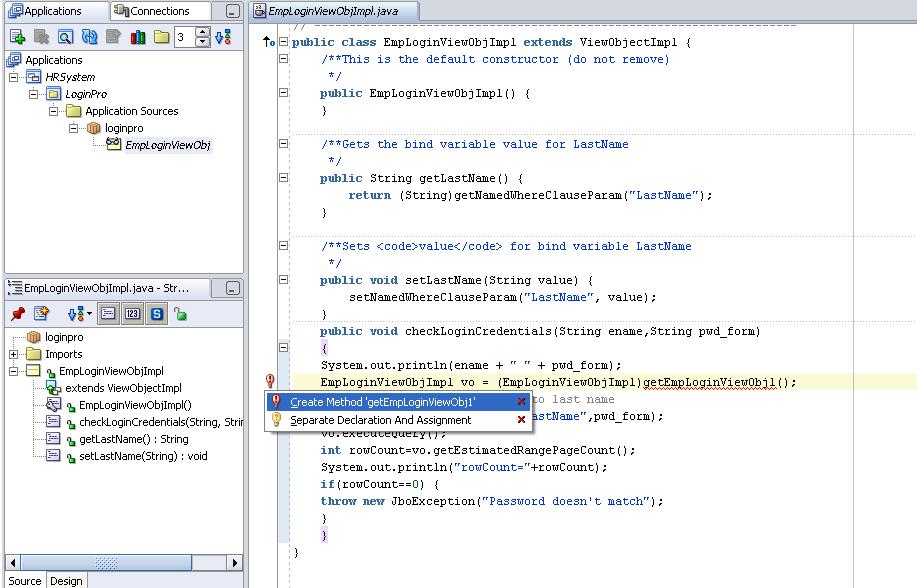 بتاريخ: 15 فبراير 201016 سنة كاتب الموضوع comment_185024 شكرا جزيلا على المثال الرائعانا لما ضيفت ال method اللى اسمها checkLoginCredentials فى ال class بتاعتى اللى اسمها EmpLoginViewObjImplظهرلى خطا فى السطر دة كـود PHP EmpLoginViewObjImpl vo = (EmpLoginViewObjImpl)getEmpLoginViewObj1(); الخطأ بيقول ان ال method getEmpLoginViewObj1() مش موجودةانا مش عارف اية ال method دى دة مش متكلم عنها فى المثال خالصهو يقصد بيها ايةمرفق صورة للتوضيحربنا يجعله فى ميزان حسناتكجزاكى الله خيرا تقديم بلاغ