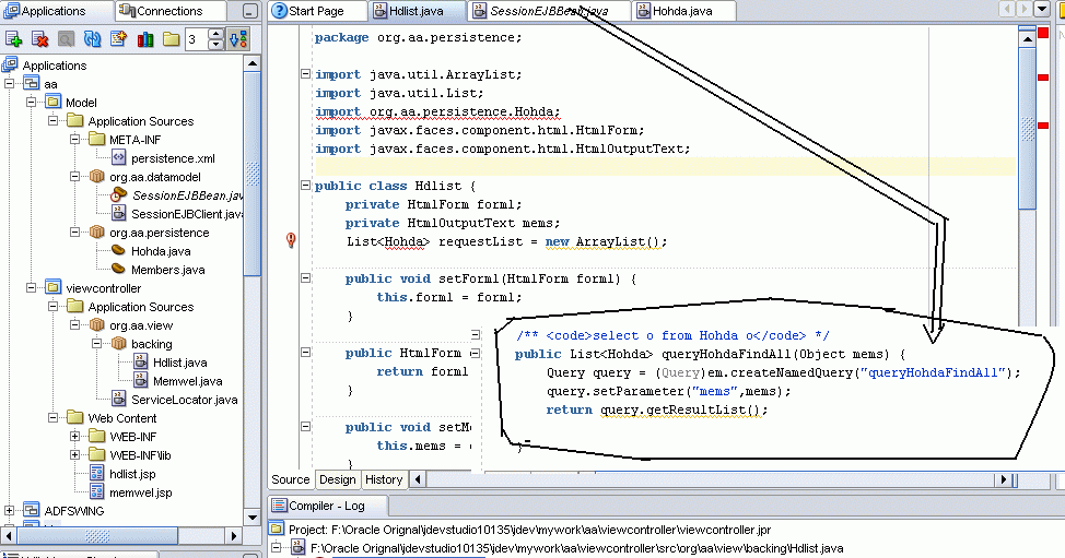 بتاريخ: 12 أبريل 201016 سنة comment_189357 البرنامج عبارة عن جدولين membersماستر - hohdaديتلحسب ال record من ال membersيختار من hohdaعملت ist تعمل query علشان تحطها في hdlist.jsp الكود بتاعها موجود في bean وانا حطط عليها دائرةعند عمل rebulidhdlist و دي ملف الجافا الخاصة بالصفحة اللي هشوف فيها الديتل يعطي hohda not foundمع اني عمل import ليهابس مش راضي يشوفها تقديم بلاغ