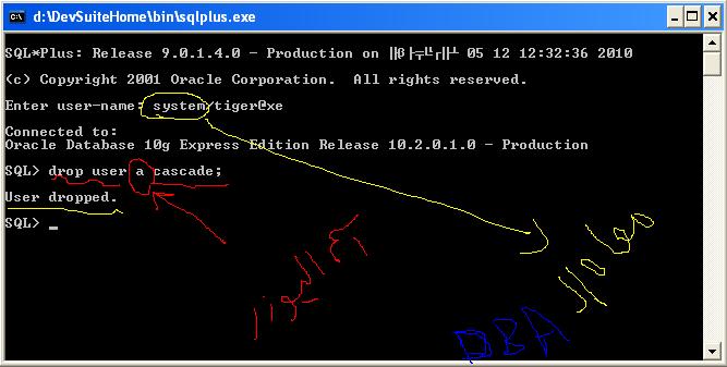 بتاريخ: 12 مايو 201015 سنة comment_191738 لعمل drop لمستخدم موجود بالفعلdrop user user_name cascade;ولازم المستخدم اللى انت متصل بيه وانت بتعمل حذف يكون معاه صلاحية ال dba تم تعديل 12 مايو 201015 سنة بواسطة ENG_HOSSAM_WALLY تقديم بلاغ