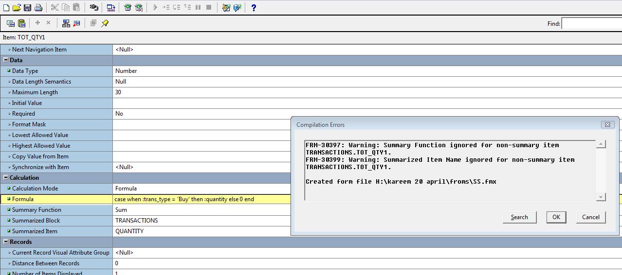 بتاريخ: 25 مايو 201015 سنة comment_192975 السلام عليكمالأفضل أن تضع 2 formula column ولا داعي لظهورهم على canvasوتجعل الformula للأولى = case when :trans_type = 'BUY' then :quantity else 0 end; case when :trans_type = 'SELL' then :quantity else 0 end; وتجعل TOT_QTY1 عبارة عن sum الformula الأولىوتجعل TOT_QTY2 عبارة عن sum الformula الثانية تقديم بلاغ