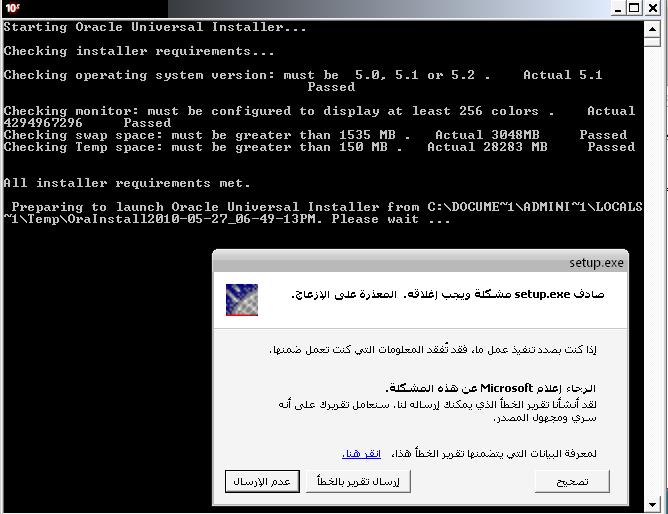 بتاريخ: 27 مايو 201015 سنة comment_193179 السلام عليكمتواجهني مشكلة كل ماحاولت تثبيت الدفلوبرالبرنامج حملته من موقع اوراكل Oracle Developer Suite 10g (10.1.2.0.2) for Microsoft Windowsمع إني زدت مساحة الذاكرة الظاهريه ولاتزال المشكلة جارية البرنتات بالمرفقاتtemp space هل تحتاج لزيادة ؟احتاج البرنامج بشدة تقديم بلاغ