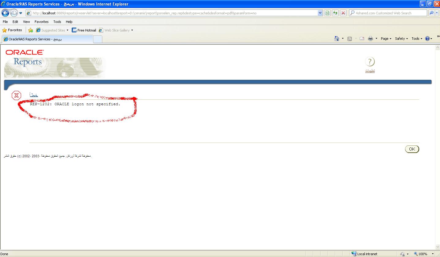 بتاريخ: 4 يوليو 201015 سنة comment_195977 Web.show_document ('http:\\ localhost:8889/reports/rwservlet?sever=localhost&report=F:\rep.rdf &destype=cache&desformat=htmlcss¶mform=no&p_id='||&:id||'&p_name'=||:name||'&p_phone='||:phone); انا اسف جدا على التاخير تقديم بلاغ