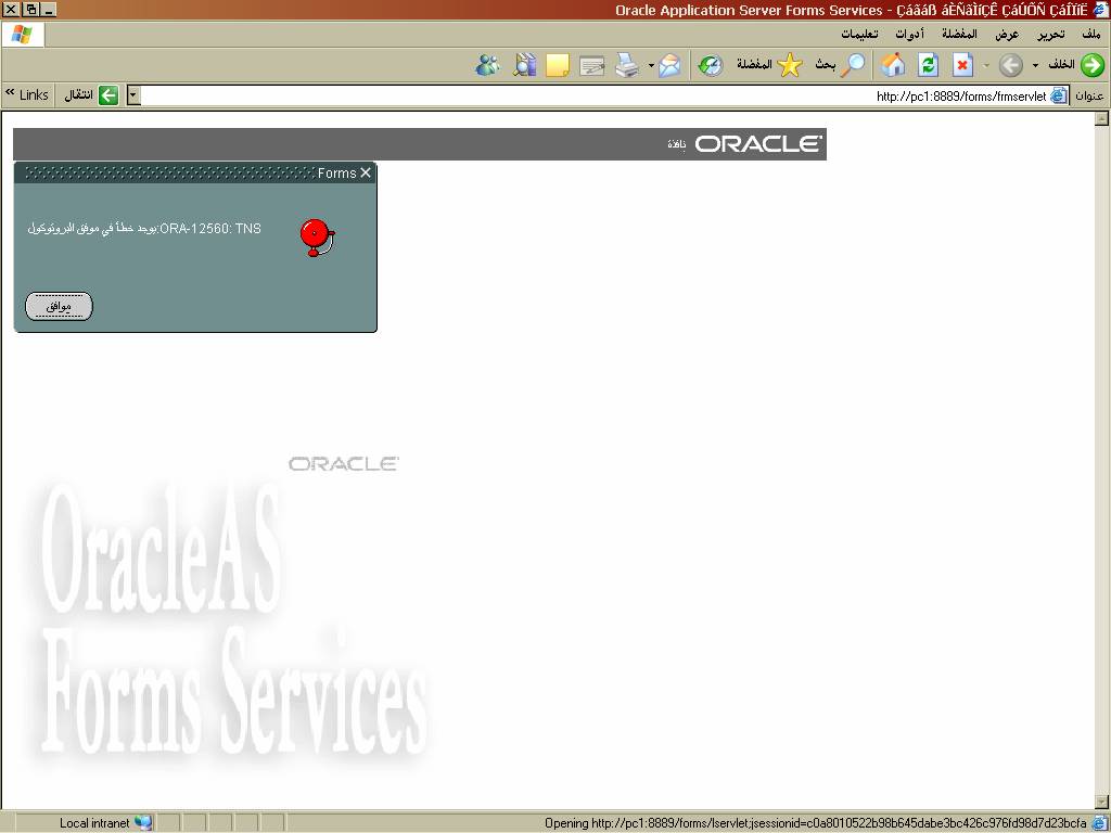 بتاريخ: 6 يناير 201115 سنة comment_206818 السلام عليكمبعد الانتهاء من تثبيت اواكل 10G وعند عمل run من الفورم تظهر رسالة خطأ الصورة في المرفقاتالرجاء المساعدة تقديم بلاغ