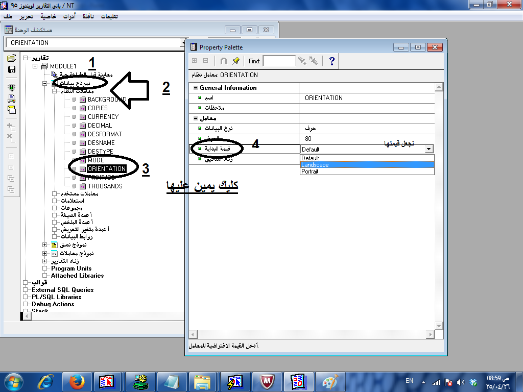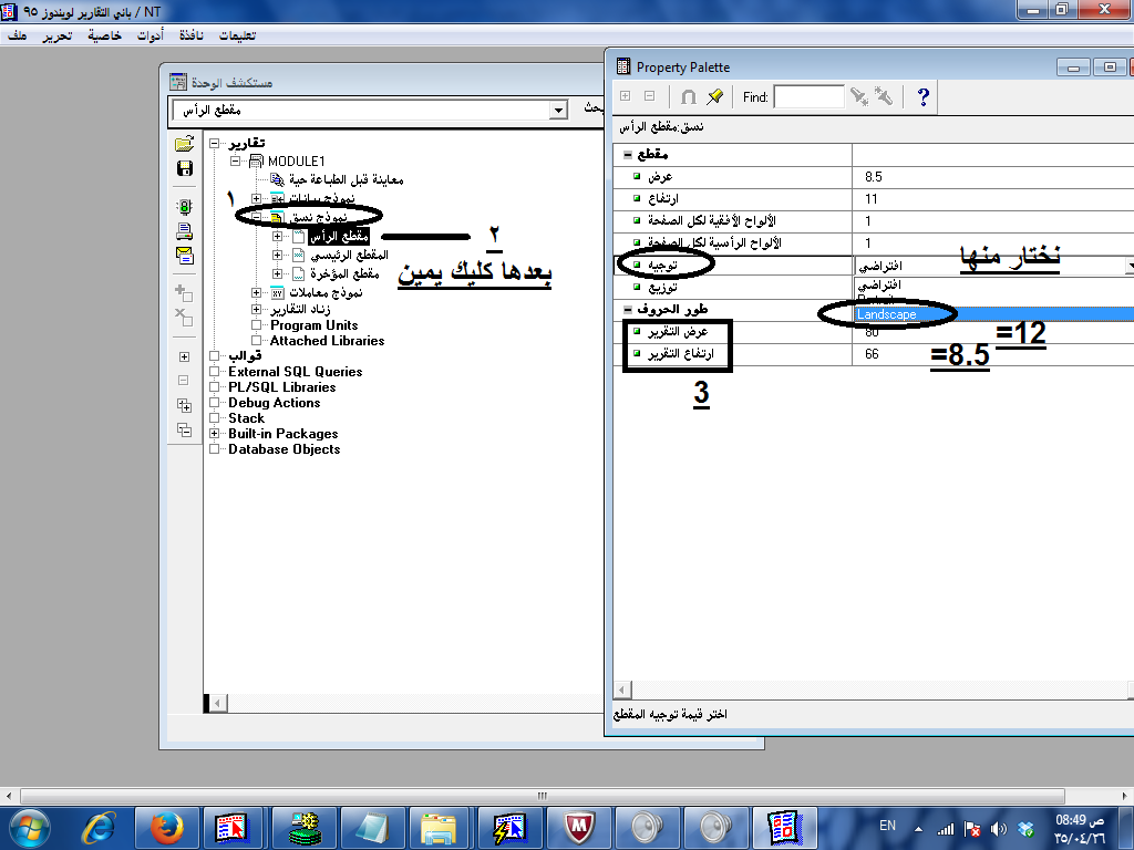 بتاريخ: 26 فبراير 201412 سنة comment_247105 السلام عليكم تفضل هذه الخطوات بالعربي (( أي على ربيوت بيلدر واجهة عربي )) لجعل التقارير بالعرض- - أولا من ايقوننموذج تنسيقيوجد في ألسفل ثلاث قطععلى كل قطعه كلك يمينثم جعل قيمتهاLandSpaceفي كل الخيارات الثلاقهوجعل قيمت العرض معها12وارتفاع8.5- - ثانيا:: من نموذج بياناتأخترمعاملات النظاميوجد امر اسمهOrientationأجعله الإفتراضيLandSpace ((ثم حفظ )) يوجد مرفق تطبيق على ما سبق.. موووفق,,, تقديم بلاغ
