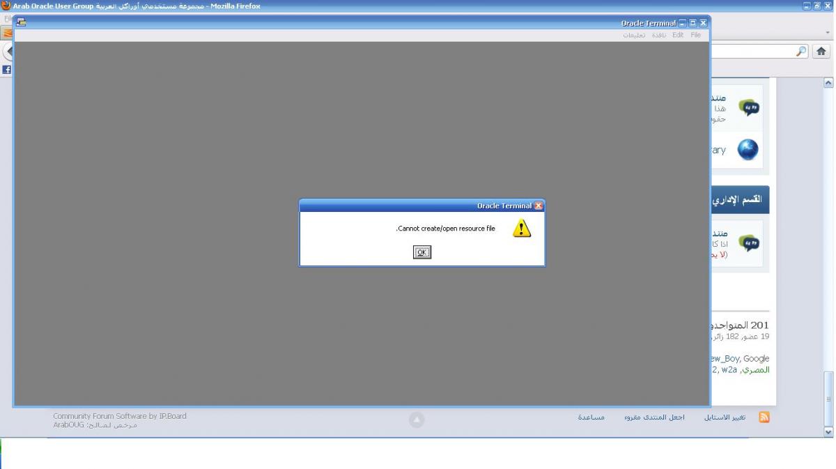 بتاريخ: 28 ديسمبر 201114 سنة كاتب الموضوع comment_219062 السلام عليكم ورحمة الله وبركاته قمت بتحميل ال Oracle Terminal من الاسطوانة الخاصة بالديفيلوبر عن طريق اختيار Custom اثناء التسطيب وعندما فتحت البرنامج وحددت له مسار الملف تظهر الرساله التى فى المرفق فما الحل ؟ أخي الفاضل NEW_BOY تأكد من اسم الملف مع العلم أن اسم الملف يحدده اصدار الديفلوبر واصدار الويندوس انا عندي 6I و WINDWOS XP حاول تحرب الاسماء المقاربة له وشوف ايش من ملف يفتح وارجوا الرد اخوك.... تقديم بلاغ