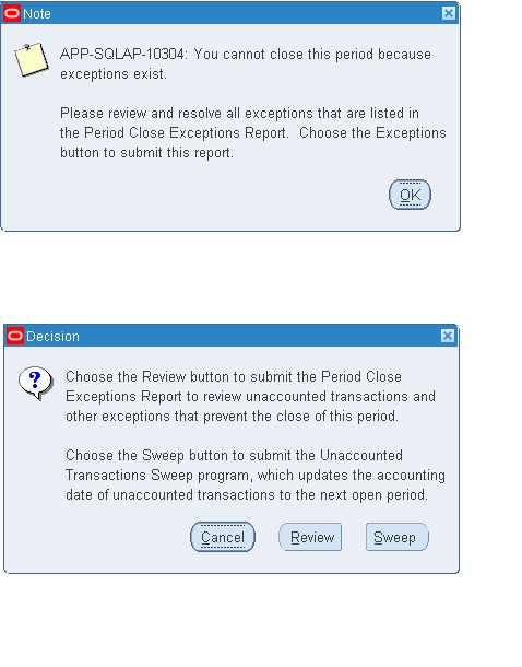 بتاريخ: 15 مارس 201213 سنة comment_221879 واجهتني مشكلة عند اغلاق الفترة في موديول AP كما في الصورة المرفقة وعند اختيار Exceptions ومعرفة السبب ظهر خطأ وهو Unaccounted Payment Activity وذلك على 2 Payment على الرغم من تشغيل Request Create Accouting و Transfer To GL عند ظهورUnaccounted Payment يتم عمل Payables Accounting Process _______Run Request تقديم بلاغ