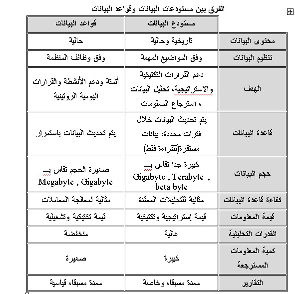 بتاريخ: 4 يوليو 201213 سنة comment_226014 اخي اعزيز الجدول الاتي يمكن ان يوضح لك الفق بين قواعد البيانات ومستودعات البيانات قواعد البيانات مقابل مستودعات البيانات.pdf تقديم بلاغ