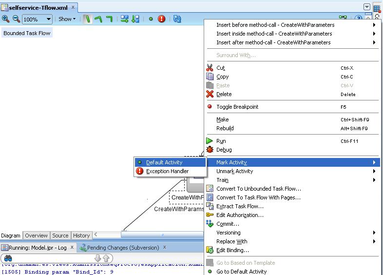 بتاريخ: 23 مايو 201213 سنة comment_224885 بسيطة جدا. افتح التاسك فلو بتاعتك و روح على الداتا كنترول و اعمل drag and drop لل operation اللى اسمها createinsert فى التاسك فلو و خليها ال default activity و بعد كدة بس اعمل navigation control من الميثود دى للصفحة بتاعتك. كيف اجعلهاكيفخليها ال default activity انا اسف لعدم توضيحىلجعلها default activity فقط اضغط بالزر الايمين للفارة على CreateInsert التى وضعتها فى التاسك فلوثم اختار mark activity ثم default activityمرفق صورة للتوضيح تقديم بلاغ