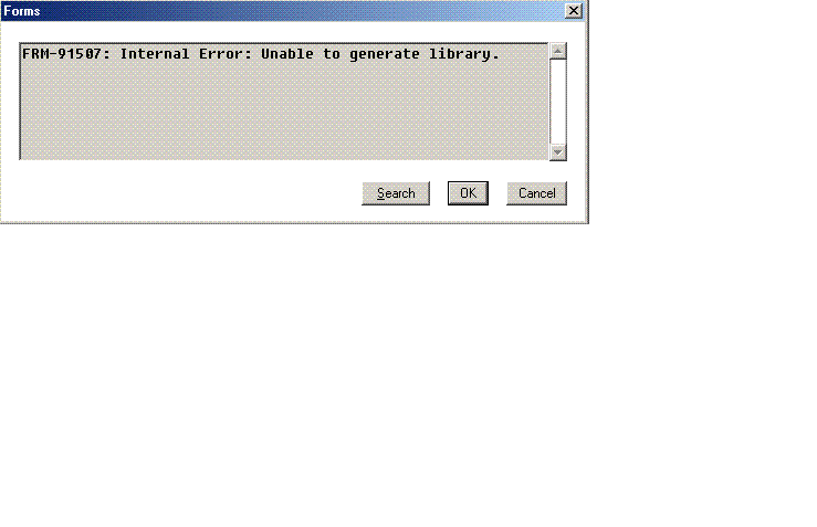 بتاريخ: 29 يناير 200521 سنة comment_25821 الأخوة الأعزاء أواجه مشكلة في إنشاء ملف PLL والذي يحتوي على دوال إجراءات عامة استخدمها في برامجي عند ترجمته باستخدام FormBuilder 9 مع عدم ظهور أي مشاكل مع FormBuilder 6 ورسالة الخطأ هي:FRM-91507: Internal Error: Unable to generate library. تقديم بلاغ