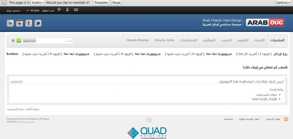 بتاريخ: 27 نوفمبر 201213 سنة comment_229537 السلام عليكمبامكانك الإطلاع على الموضوع التالي:http://www.araboug.o...opic=36869&st=0بالتوفيق. يطلع لي كذهليس لديك صلاحيات لمشاهدة هذا الموضوع .روابط مفيدة ملفات المساعدة الإتصال بالإدارة العامة يرجى التجربة مرة اخرى...لا يوجد مشكلة في اللينك.. تقديم بلاغ