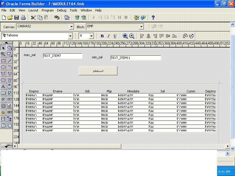 بتاريخ: 14 أبريل 201312 سنة comment_235035 السلام عليكم you can use set_block_property to define the where clause of employee block in WHEN-BUTTON-PRESSED trigger and then execute_query on employee block SET_BLOCK_PROPERTY('block_name', default_where, 'your where clause'); build your where clause depending on min & max salary to get all employees within your salary range Best Regards تقديم بلاغ