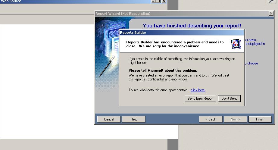 بتاريخ: 20 مايو 201312 سنة comment_236440 السلام عليكم اخواني انا عندي مشكلة في انشاء التقرير عند اخر مرحلة يعطي خطء مثل الصوره المرفقه الرجاء المساعده وشكرا تقديم بلاغ