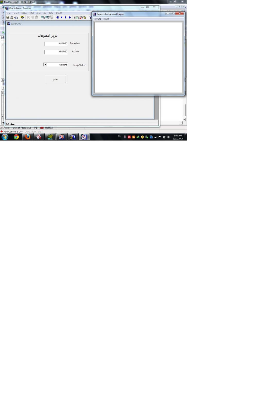 بتاريخ: 31 مايو 201312 سنة comment_236868 انا ربط التقرير بى فورم تنادى عليه انا شغاله على 6i كنت عايزه اسال هو انا لازم اعمل برامتر فى التقرير نفسه قبل ما اعمل برامتر على الشاشه اللى هتنادى التقرير انا عندى مشكله ان التقرير مش بيظهر برغم ان مفيش error فى التريجر ده التريجر اللى انا كتبته وده البرنت اللى بيظهرلى New Text Document (2).txt تقديم بلاغ