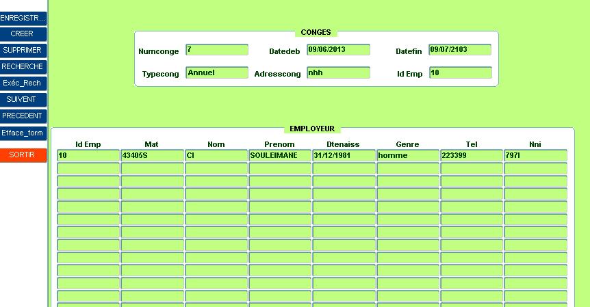 بتاريخ: 10 يوليو 201312 سنة كاتب الموضوع comment_238420 يا جماعه انا عامل 2 بلوك على الفورم : بلوك موظفين و بلوك اجازات employe conges وهذا الكود الذي كتبته أنا محاولة، وقمت بوضعه في بلوك موظفين..الكود يقبل التنفيذ دون خطأ، لا كن لا يؤدي المهمة فهل من اقتراح WHEN-VALIDATE-ITEM IF:CONGES.ID_EMP=:EMPLOYE.ID_EMP THEN MESSAGE('cet employé a y déja son conjé pour cette année'); MESSAGE('cet employé a y déja son conjé pour cette année'); RAISE FORM_TRIGGER_FAILURE; END IF ; صور مرفقة تم تعديل 10 يوليو 201312 سنة بواسطة ely تقديم بلاغ