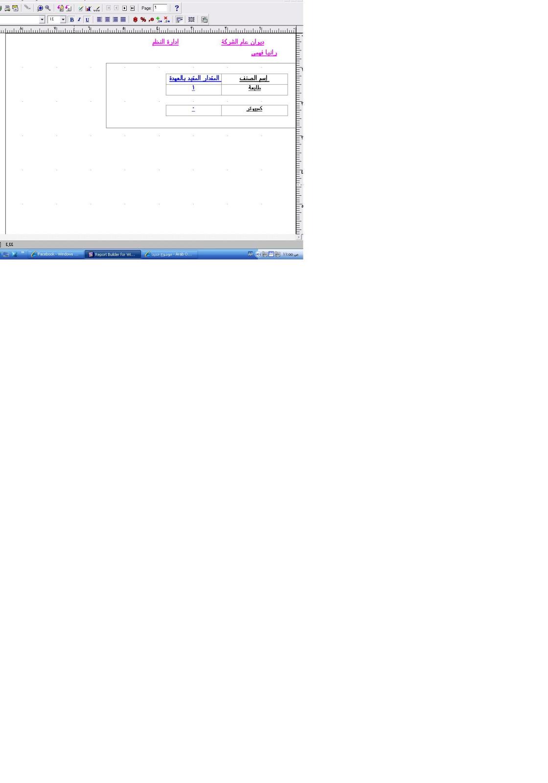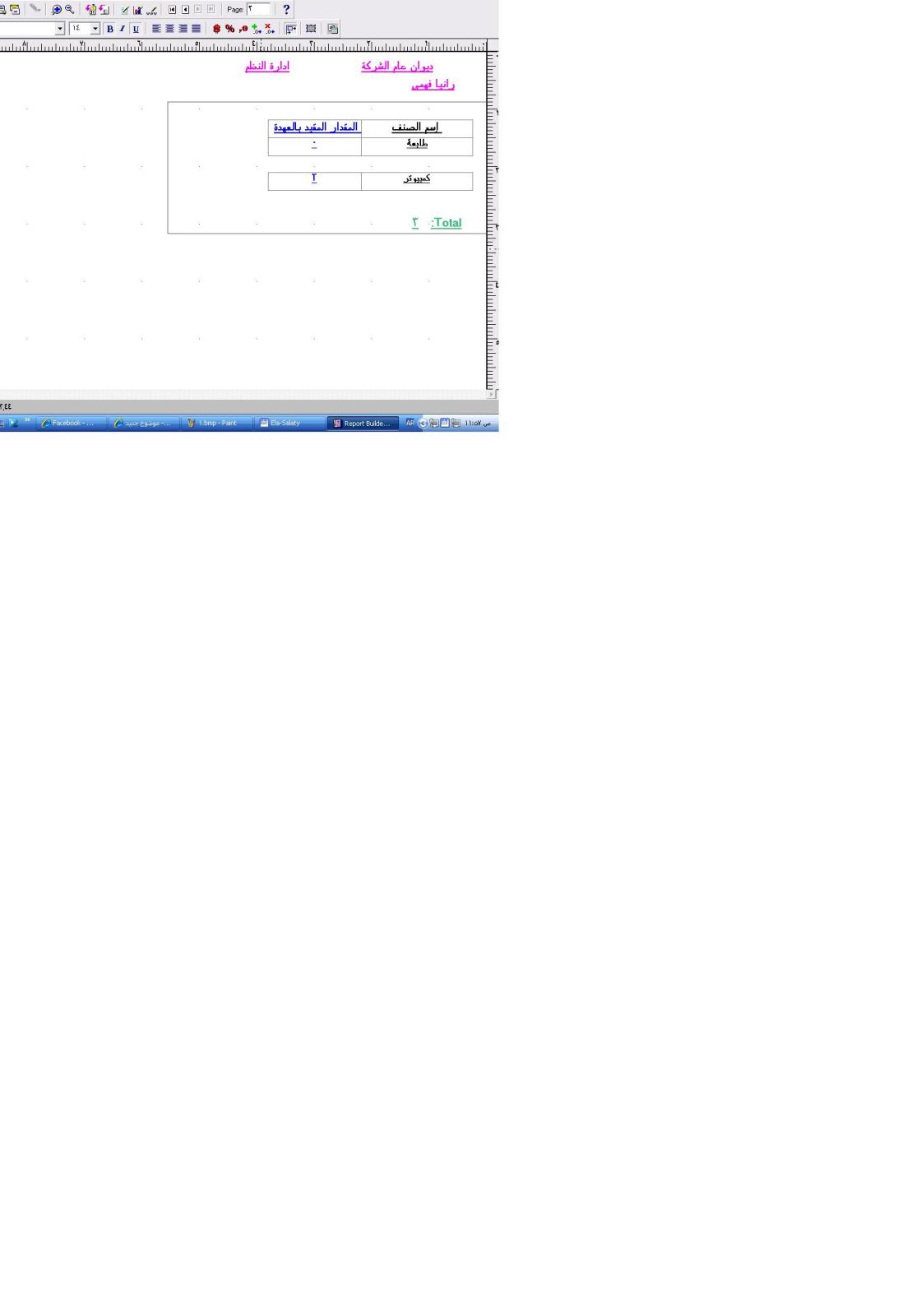 بتاريخ: 18 يوليو 201312 سنة comment_238633 السلام عليكم ورحمة الله بالنسبة لاظهار الوحدة بجانب الصنف بتم عمل فيلد جديد يجمع بين الصنف والوحدة وهذا الفيلد هو الذى يظهر على الريبورت بدلا من فيلد الوحدة اما بالنسبة لعدد الاعمدة التى تظهر انا لست متاكد من السبب ولكن على سبيل التجربة حاولى ان تقلصى عرض الاعمدة وننظر ماذا يحدث لو ظهر عدد اكثر من الاعمدة هذا يعنى عدة اشياء اما ان يكون الفريم غير قابل للتمدد او ان تكون الصفحة حجمها غير مضبوط عموما دعينا نجرب تصغير عرض الاعمدة ونرى النتيجة الله الموفق تقديم بلاغ