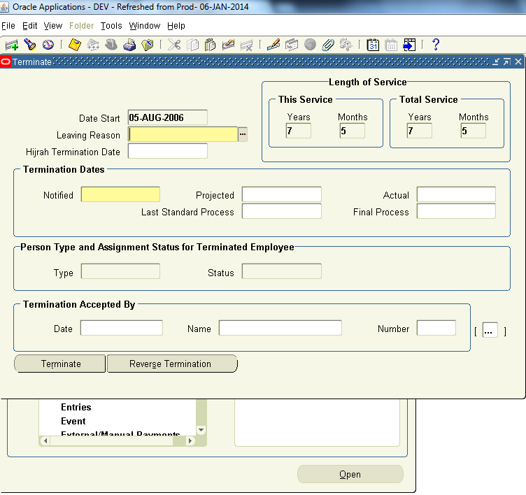 بتاريخ: 28 يناير 201412 سنة comment_245966 Actual Termination هو تاريخ انهاء الخدمة للموظف Final Close عادة يكون اخر السنة الحالية او بمعنى ادق اخر فترة في صرف الرواتب مثل توزيع الارباح والاسهم وما شابه ذلك The Last Standard Process هذا تاريخ اخر يوم تصرف له مستحقات فيه وعادة يكون اخر الشهر الذي انتهت خدماته فيه تقديم بلاغ