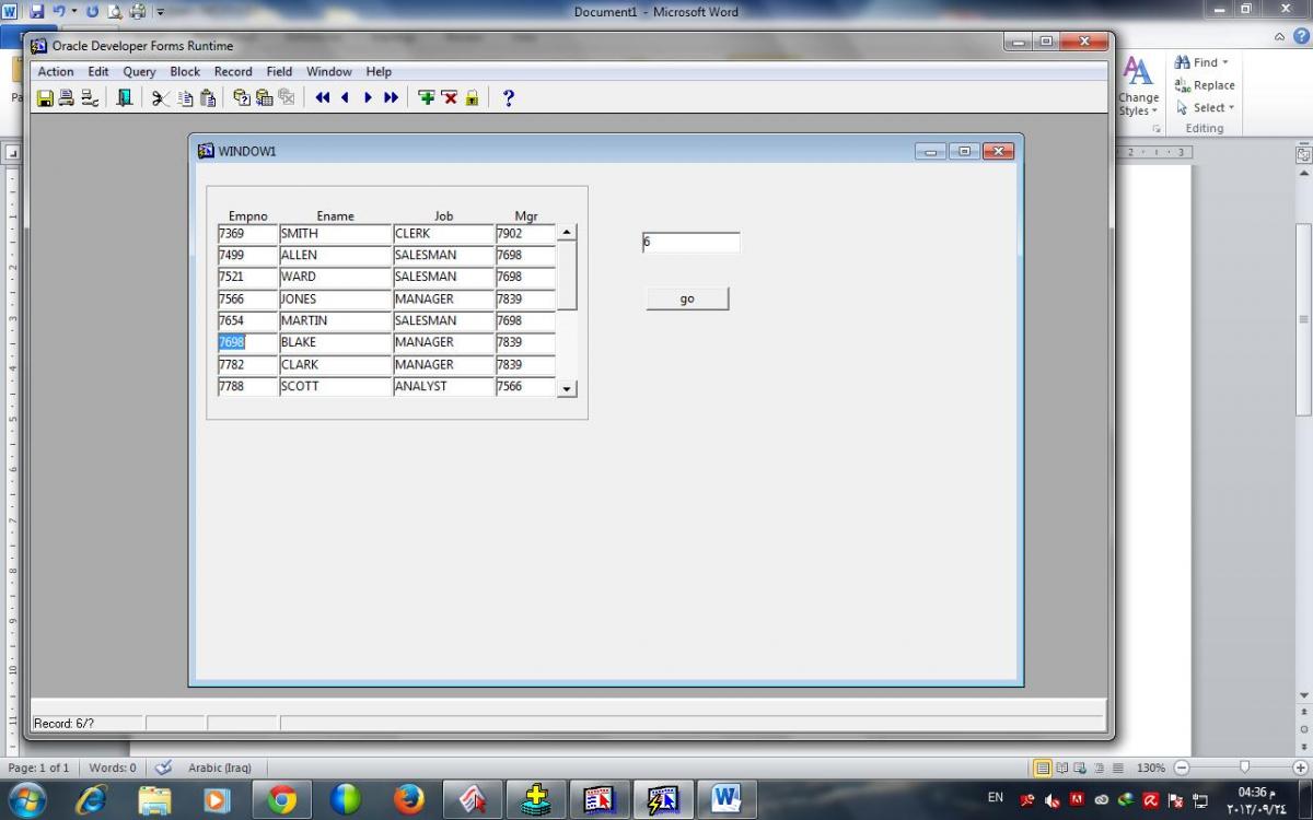 بتاريخ: 24 سبتمبر 201312 سنة كاتب الموضوع comment_240447 السلام عليكم ورحمة الله وبركاته... تعمل text item لتكتب فيه رقم الريكورد المراد الذهاب له ...وفي القرب منه تعمل button تسميه go مثلا...حتى عند الضغط عليه يتم نقلي الى الريكورد الذي اريده...صح؟؟؟ حسناً تحت الحدث when button pressed لهذا الbutton نكتب الايعاز التالي ... go_record(:blk.textitem); حيث blk اسم البلوك التي تعمل عليها وtextitem هو هذا الذي عملنه حتى نكتب به رقم الريكورد المراد الذهاب له.. جربتها تعمل بصورة صحيحة.... بالتوفيق ان شاء الله شكرا جدااا ليكى يا ست الكل على كل شيئ بس مش هو دة الى انا اقصده بس لو قدرت اوصل لرقم الريكورد بطريقة ما يعتبر المشكلة اتحلت وانا جربت الطريقة الى حضرتك مشكورة قدمتهالى بس مش نفعت هى مرفقة وشكرا ليكى كمان مرة ونخدمك في اى Error يقبلك ان شاء الله mysem_elkram.rar تقديم بلاغ