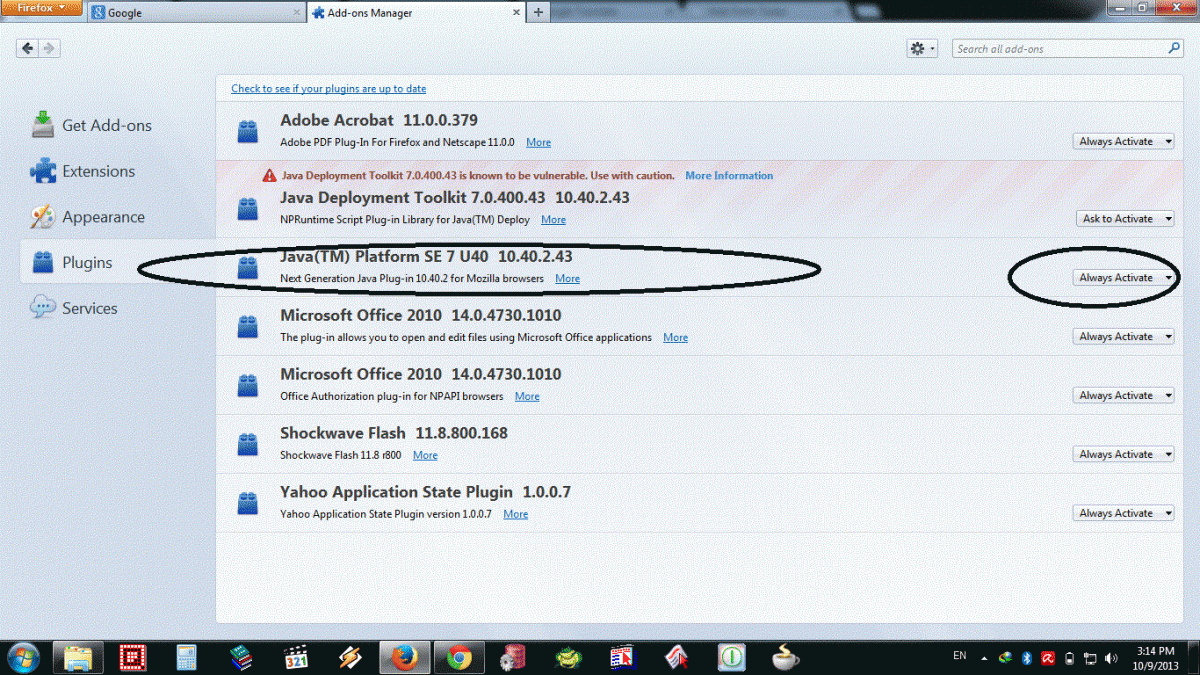 بتاريخ: 26 يناير 201412 سنة comment_245877 خواني الكرام كل هده اللول ليست اكيدة تفضلوا الحل الاكيد مع تحياتى : # ====================configuration java avec firefoxe plugin===================================# =======================================================jpi_download_page=http://java.com/en/download/index.jspjpi_classid=clsid:8AD9C840-044E-11D1-B3E9-00805F499D93jpi_mimetype=application/x-java-applet تقديم بلاغ